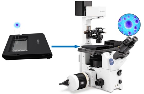 下面分別展示了iDrop™儀器芯片放置圖和iDrop™儀器和顯微鏡組合使用的示意圖。除了可以使用衡芯生物公司提供的標(biāo)準(zhǔn)芯片外,用戶還可以根據(jù)自己使用的需求,定制芯片。