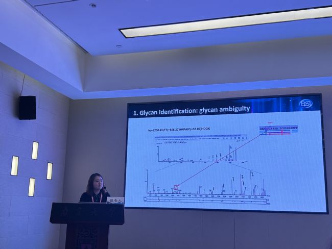 會(huì)議上,BSI-China的負(fù)責(zé)人李文婷針對糖蛋白組研究的數(shù)據(jù)分析分享了Pitfalls in Glycoproteomics Data Analysis的報(bào)告,重點(diǎn)介紹了在糖蛋白質(zhì)組學(xué)和糖組學(xué)質(zhì)譜研究領(lǐng)域面臨的三個(gè)主要難題及PEAKS® GlycanFinder對應(yīng)的解決方案。