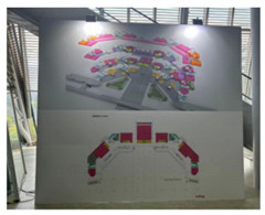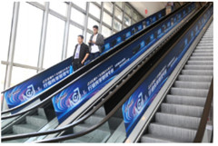 會場扶梯旁-型材展板廣告(一塊)尺寸:3.5米高x4米長 材質(zhì):型材+KT板 |