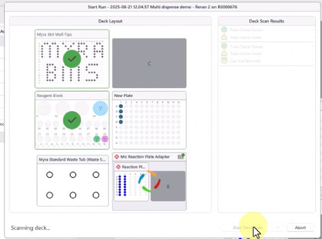 MyraVision®:視覺(jué)識(shí)別與確認(rèn)。利用計(jì)算機(jī)視覺(jué)技術(shù)理解工作臺(tái)面布局,自動(dòng)檢測(cè)缺失的耗材(如槍頭、板位),并確認(rèn)實(shí)驗(yàn)設(shè)置是否正確(如試管蓋是否打開)。用戶只需一鍵掃描,即可輕松回答“我的槍頭夠嗎?”“管子蓋打開了嗎?”“耗材放對(duì)了嗎?”等關(guān)鍵問(wèn)題,極大減少人為設(shè)置錯(cuò)誤。Workbench 2.0的到來(lái),標(biāo)志著自動(dòng)化實(shí)驗(yàn)正式邁入智能感知與自主決策的新紀(jì)元。