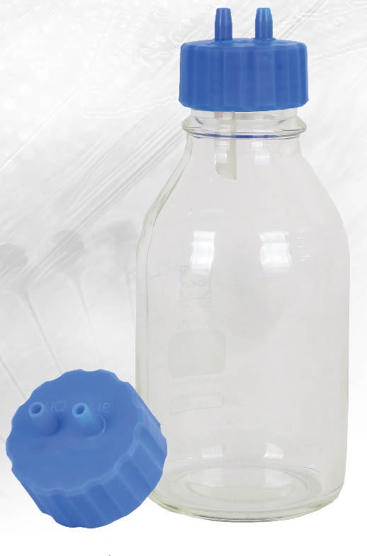 SB-4510玻璃緩沖瓶:全新上市的緩沖瓶,采用實(shí)驗(yàn)室最為常見的藍(lán)蓋試劑瓶作為盛裝液體的瓶體部分,該種試劑瓶任何品牌、自500ml以上規(guī)格的均采用國際標(biāo)準(zhǔn)的GL45規(guī)格的瓶口,我們設(shè)計(jì)了一款同樣采用GL45螺紋規(guī)格的兩孔吸液蓋,模具一體成型,搭配試劑瓶配套使用。兩孔吸液蓋的2個(gè)吸液孔一端連接真空泵、另一個(gè)連接過濾瓶或吸液瓶。這樣設(shè)計(jì)的緩沖瓶便于日后瓶體部分的更換。