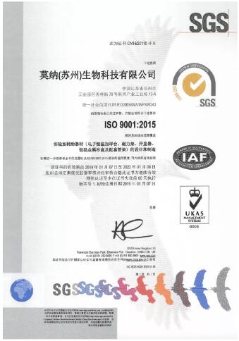 2019年1月7日,莫納(蘇州)生物科技有限公司通過(guò)了ISO9001:2015質(zhì)量管理體系認(rèn)證,認(rèn)證范圍為:實(shí)驗(yàn)室輔助器材(電子恒溫加樣臺(tái)、磁力架、開(kāi)蓋器、恒溫金屬冰盒及配套管架)的設(shè)計(jì)和制造。