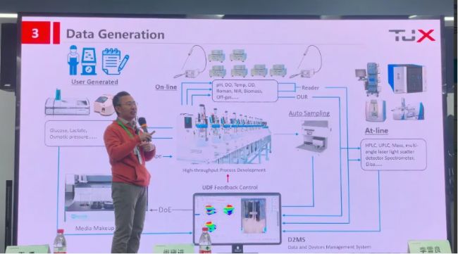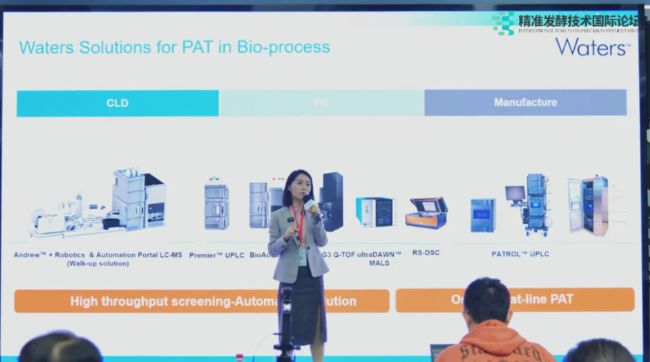 沃特世制藥市場高級經(jīng)理宋玉玲介紹了過程分析技術(shù)(PAT)通過將傳感器、在線分析儀器(如液相色譜)的數(shù)據(jù)傳輸至反應(yīng)器建立自動化工作流,通過生物工藝全鏈條的實時數(shù)據(jù)采集、分析、決策,實現(xiàn)有效的生物工藝控制,為生物工藝優(yōu)化、產(chǎn)品質(zhì)量控制提供了實時有效的數(shù)據(jù)支持。