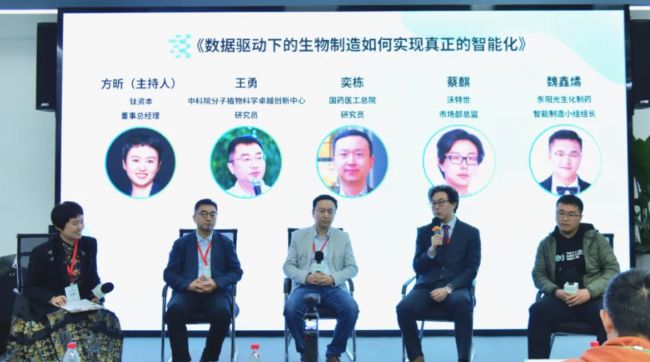 在“數(shù)據(jù)驅(qū)動下的生物制造如何實現(xiàn)真正的智能化”圓桌討論中,鈦資本董事總經(jīng)理方昕、中科院分子植物科學(xué)卓越創(chuàng)新中心研究員王勇、中國醫(yī)藥工業(yè)研究總院研究員奕棟、沃特世市場總監(jiān)蔡麒、東陽光生化制藥智能制造小組組長魏鑫燏圍繞AI在生物制造中的核心應(yīng)用展開,重點探討了數(shù)據(jù)驅(qū)動的新藥研發(fā)、工藝優(yōu)化及生產(chǎn)智能化轉(zhuǎn)型。討論聚焦AI算法與硬件協(xié)同、經(jīng)驗與數(shù)據(jù)混合決策機制,以及跨領(lǐng)域數(shù)據(jù)標(biāo)準(zhǔn)化難題。嘉賓們對智能化的未來進(jìn)行了大膽預(yù)測,包括自動迭代工藝優(yōu)化系統(tǒng)、細(xì)胞內(nèi)外雙向交互媒介系統(tǒng)的突破等,嘉賓們對真正智能化的生物制造充滿期待。