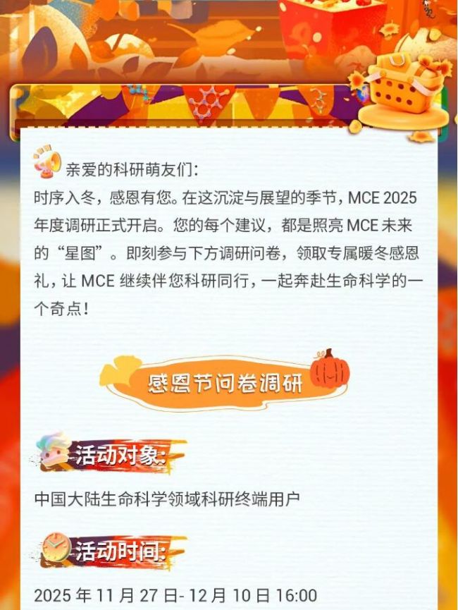 MCE 2025年度調(diào)研開啟,完成感恩節(jié)問卷100%得好禮