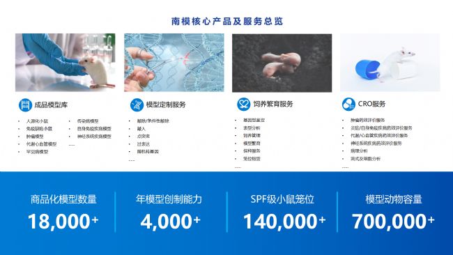 上海南方模式生物科技股份有限公司(Shanghai Model Organisms Center, Inc.,簡稱"南模生物"),成立于2000年9月,是一家上交所科創(chuàng)板上市高科技生物公司(股票代碼:688265),始終以編輯基因、解碼生命為己任,專注于模式生物領(lǐng)域,打造了以基因修飾動(dòng)物模型研發(fā)為核心,涵蓋多物種模型構(gòu)建、飼養(yǎng)繁育、表型分析、藥物臨床前評價(jià)等多個(gè)技術(shù)平臺,致力于為全球高校、科研院所、制藥企業(yè)等客戶提供全方位、一體化的基因修飾動(dòng)物模型產(chǎn)品解決方案。