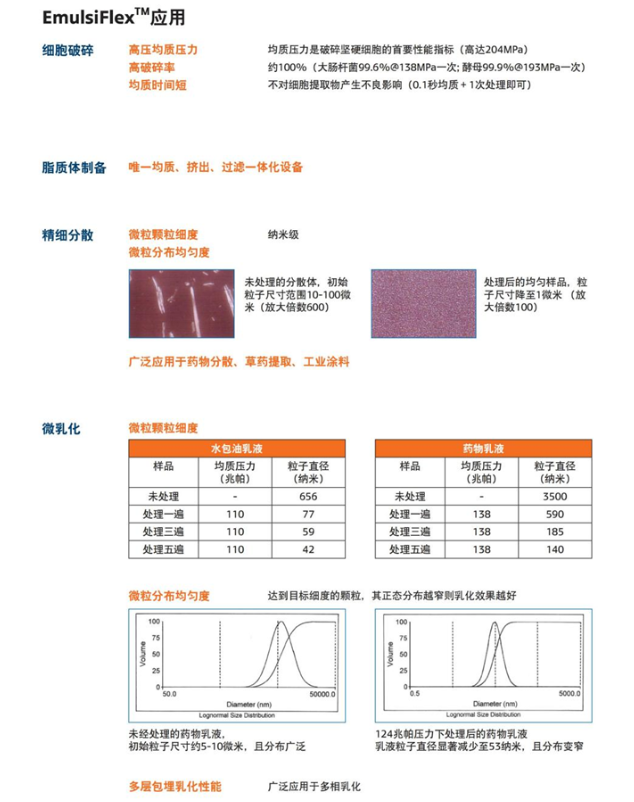 ● 用于細胞破碎、納米懸浮液、脂質(zhì)體、乳化液