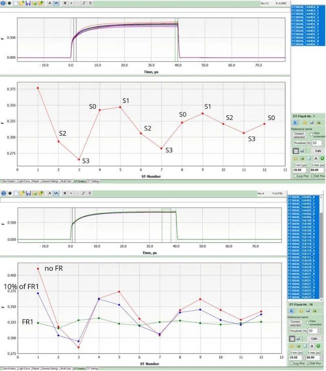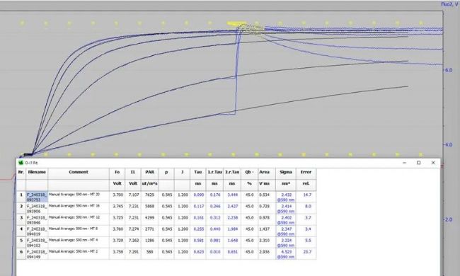 1. Klughammer, C., Schlosser, F. & Schreiber, U. Flash-kinetics as a complementary analytical tool in PAM fluorimetry. Photosynth Res 161, 151–176 (2024). [MULTI-COLOR-PAM-II]