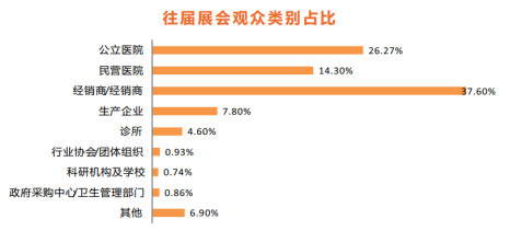 在已成功舉辦的各屆醫(yī)博會中,組委會通過積累豐富的行業(yè)客戶資源,以及與各級醫(yī)療行業(yè)學會、協會、商會、行業(yè)媒體、行業(yè)平臺等單位溝通合作, 專注于邀請參展商重點關注的專業(yè)買家到場參觀、交流、采購。近年以來,各屆醫(yī)博會到場觀眾人次均保持在1.5萬至2.5萬,包括各級公立醫(yī)院、民營醫(yī)院、經銷商、代理商、診所、醫(yī)療器械生產廠家等專業(yè)觀眾類別,其中,醫(yī)院和經銷單位的到場客戶比例占全部觀眾的80%以上。