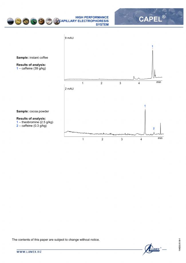茶,咖啡,可可,草藥產(chǎn)品中咖啡因,可可堿的測定-LUMEX毛細(xì)管電泳法