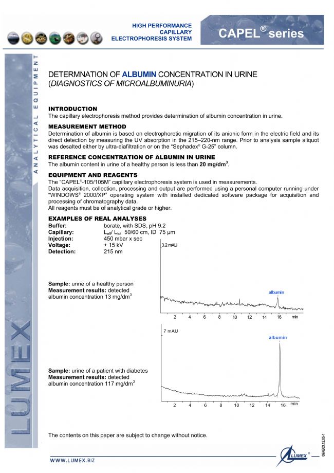 尿液中白蛋白的測定-LUMEX毛細管電泳法