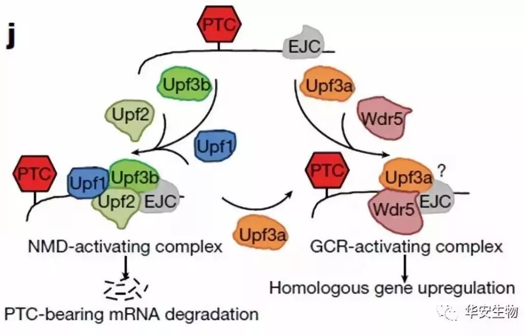 課題組首次揭示基因補償效應是由攜帶提前終止密碼子的信使核糖核酸(mRNA)所激起,由無義突變mRNA降解途徑(NMD)中的上游移碼蛋白3a(Upf3a)參與。同時,還揭示同源序列核酸是上調(diào)補償效應基因的必要條件,并進一步研究證明補償效應基因轉(zhuǎn)錄水平的增加是由于補償基因啟動子區(qū)域組蛋白的表觀遺傳學修飾所引起的。該研究為疾病的治療提供了新思路。