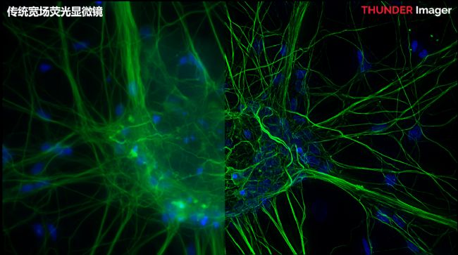 左,寬場熒光顯微鏡;右,THUNDER