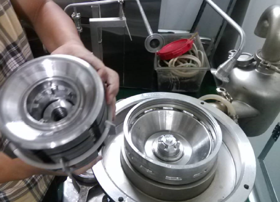 經(jīng)過CIP清洗后的阿法拉伐碟片式離心機內(nèi)部轉鼓