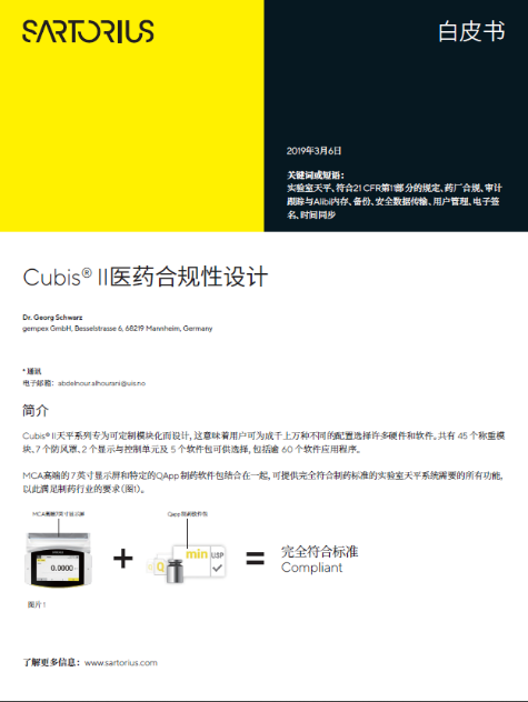 根據(jù)ALCOA (+)的規(guī)定,Cubis® II生成的數(shù)據(jù)遵循其為準(zhǔn)確可靠的紙質(zhì)和電子記錄定義的數(shù)據(jù)完整性標(biāo)準(zhǔn)的關(guān)鍵原則,F(xiàn)代化數(shù)據(jù)處理以各種方式支持安全存儲(chǔ)。