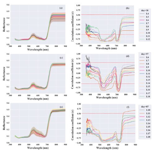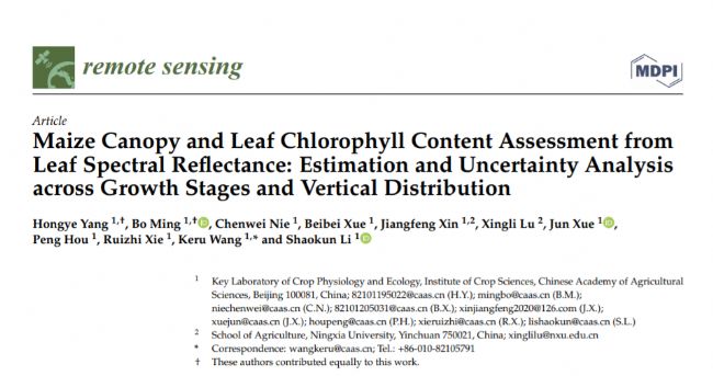 冠層葉綠素含量(CCC)可以反映一個種群的總光合生產(chǎn)力,是判斷植物個體生長和營養(yǎng)狀況的重要依據(jù)。通過遙感準(zhǔn)確監(jiān)測冠層和葉片尺度的葉綠素含量是確定作物生長狀態(tài)和預(yù)測產(chǎn)量的關(guān)鍵。玉米是一種高稈作物,葉面積大,冠層深。它具有不均勻的葉片葉綠素含量(LCC)垂直分布,這限制了遙感的葉綠素含量評估。因此,了解LCC和葉片反射光譜的垂直異質(zhì)性對提高CCC監(jiān)測的準(zhǔn)確性至關(guān)重要。