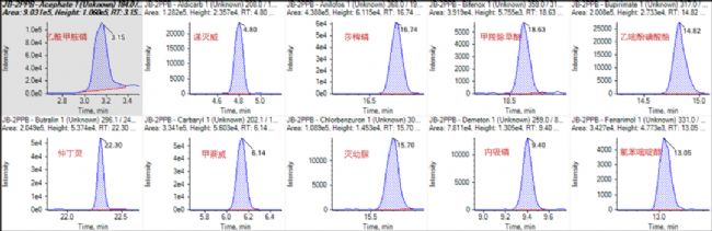 圖3. 部分農(nóng)藥的基質(zhì)加標色譜圖