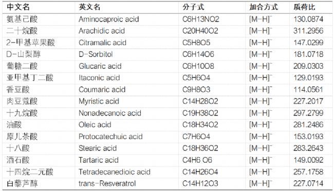 表1 不同產(chǎn)區(qū)鑒定的標志物列表(部分)
