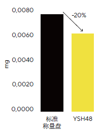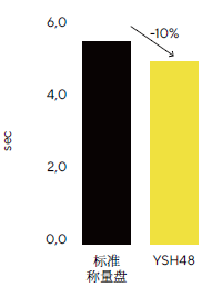如圖2所示,與標準稱量盤相比,使用YSH48時重復性提高了20 %,響應時間也提高了 10 %(圖3),使用 2 g砝碼進行測試,結果表明重復性提高了 80 %(圖4)。