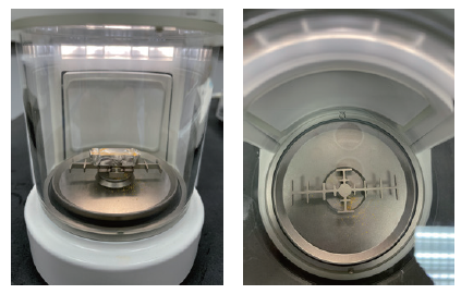 賽多利斯對天平的穩(wěn)定時間進行了重復性測試,并對天平性能進行了量化。在測試執(zhí)行過程中,使用YSH48防溢稱量盤與標準稱量盤進行對比(圖1)。整個測量重復 3 次,其中每個稱量盤重復測量 10 次。測試時,使用 1.12 mL鋁制稱重船盛裝樣品。
