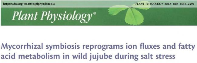植物經(jīng)常在根際中招募微生物以改善其適應(yīng)性,同時(shí)應(yīng)對(duì)非生物脅迫。叢枝菌根(AM)真菌與大多數(shù)陸地植物形成互利共生關(guān)系,并提高寄主植物對(duì)不利環(huán)境的適應(yīng)力。棗是一種典型的AM共生木本物種,已知其AM根在野外條件下廣泛發(fā)育。然而,它們對(duì)鹽脅迫的適應(yīng)仍然未知。2022年5月,西北農(nóng)林科技大學(xué)黃建課題組在Plant Physiology(IF 8.005)上發(fā)表 “Mycorrhizal symbiosis reprograms ion fluxes and fatty acid metabolism in wild jujube during salt stress”的研究文章,作者利用靶向代謝組學(xué)和轉(zhuǎn)錄組學(xué)揭示了AM促進(jìn)棗對(duì)抗鹽脅迫的機(jī)制,提示了AM提高共生宿主離子穩(wěn)態(tài)和調(diào)控宿主脂肪酸(FA)代謝以對(duì)抗鹽脅迫的新方向。中科新生命參與了該研究中靶向代謝組(植物激素、脂肪酸)檢測(cè)的相關(guān)工作。