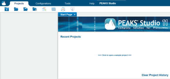 PEAKS的安裝說(shuō)明請(qǐng)參見(jiàn)《用戶手冊(cè)》的“1.3 安裝與激活”。安裝并運(yùn)行PEAKS后,您可以通過(guò)以下兩種方式之一打開(kāi)示例項(xiàng)目(見(jiàn)下面的截圖):