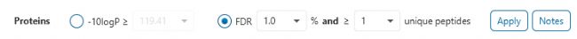 - 可以通過(guò)單擊FDR按鈕設(shè)置目標(biāo)肽譜匹配的-10lgP閾值或目標(biāo)FDR(錯(cuò)誤發(fā)現(xiàn)率)來(lái)過(guò)濾掉鑒定結(jié)果中的低分肽。