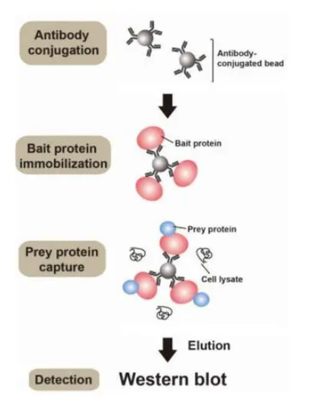 具體流程與CoIP類似:先將抗體與細(xì)胞裂解液或表達(dá)上清中的相應(yīng)蛋白結(jié)合,再與蛋白A/G偶聯(lián)的瓊脂糖或Sepharose珠子進(jìn)行孵育。通過離心,我們可以得到一個(gè)包含珠子、蛋白A/G、抗體和目標(biāo)蛋白的復(fù)合物(如果使用MagBeads,則可以通過磁力進(jìn)行分離)。在高溫和還原劑的作用下,抗原與抗體分離,收集上清液,其中包含抗體、目標(biāo)蛋白和一些雜蛋白。