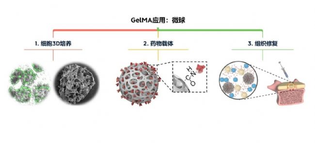 不僅保留了GelMA優(yōu)異的生物相容性和生物活性,而且可作為單獨(dú)的細(xì)胞培養(yǎng)單元或組裝成多孔支架或模擬仿生微環(huán)境,進(jìn)而應(yīng)用于細(xì)胞3D培養(yǎng)、藥物遞送、組織修復(fù)等研究領(lǐng)域。
