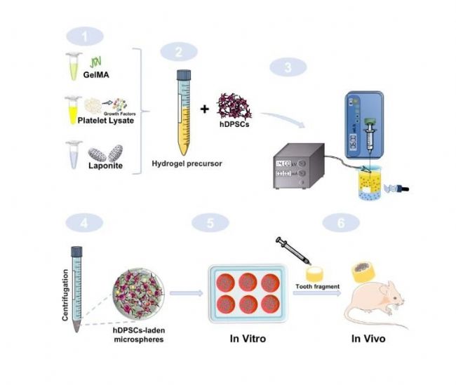 材料:GelMA、血小板裂解液(PL)、納米粘土皂石(Loponite)、人類牙髓干細(xì)胞(hDPSCs)