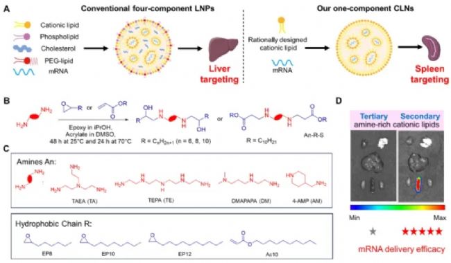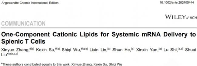 “One-Component Cationic Lipids for Systemic mRNA Delivery to Splenic T Cells”的研究論文。本研究提出,