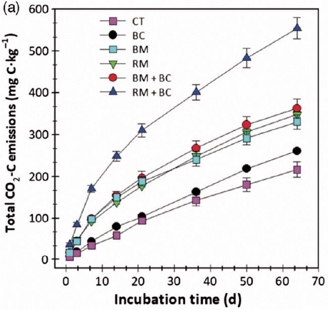 2-C 排放速率,RM + BC 觀察到了最高的累積CO