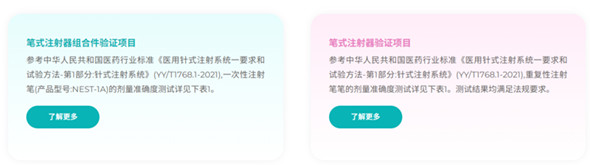 NEST于耐思于2021年取得醫(yī)療器械生產許可證,陸續(xù)形成了包括一次性筆式注射器組合件、SP筆式注射器組合件、一次性固定劑量注射筆、重復性筆式注射器等產品管線, 相關產品適配藥物包括司美格魯肽、促卵泡素(FSH)藥物、利拉魯肽、胰島素、生長激素等。