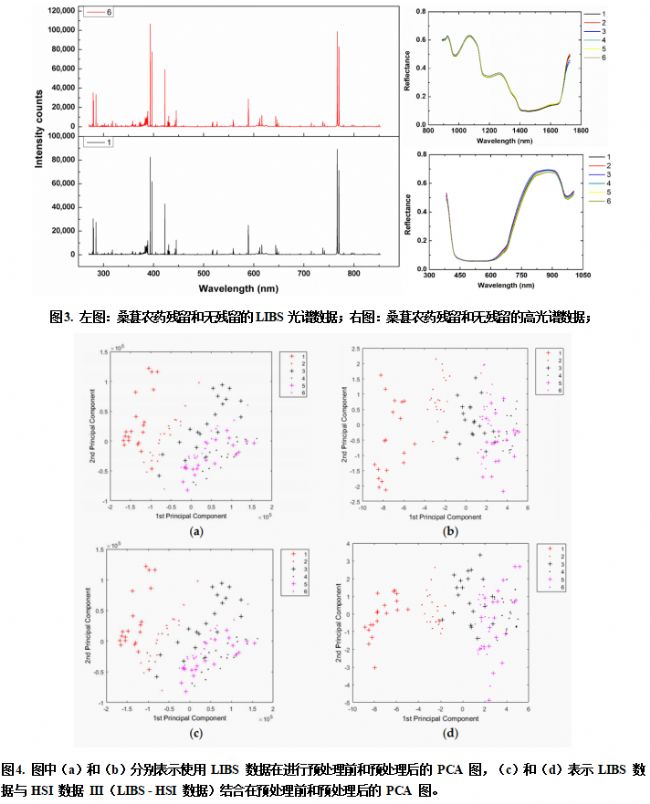 桑椹富含營養(yǎng)和生物活性物質,但易受病蟲害影響,導致農藥殘留超標,對人體健康有害,因此建立快速有效的檢測方法至關重要。傳統(tǒng)的農藥殘留檢測方法如 GC、GC - MS、HPLC 等復雜、耗時、成本高且可能導致樣品污染,而 LIBS 和 HSI 技術為快速檢測提供了新途徑。文章通過結合桑葚測量獲取的 LIBS 和 HSI 數(shù)據(jù),得到了比單獨使用LIBS數(shù)據(jù)更準確的農藥殘留檢測結果。