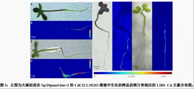 如圖為Lightigo激光光譜實驗室對植物進行鎘毒性檢測,F(xiàn)ireFly可以清晰獲取鎘元素在大麻和白芥幼苗中的相對含量分布圖,可以了解Cd污染物進入植物體內后的運輸路線和富集器官。