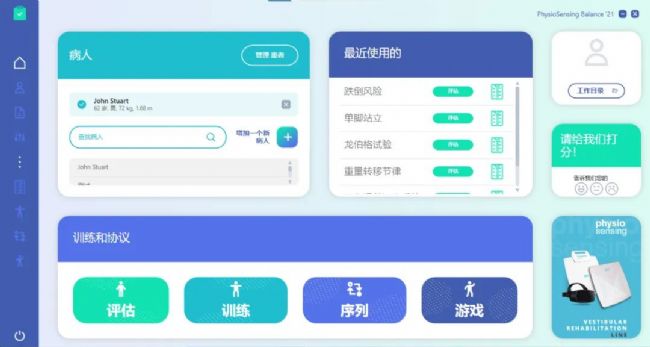 PhysioSensing軟件內(nèi)置多種常用平衡評(píng)估與訓(xùn)練程序,軟件擁有直觀的中文用戶界面,使用簡(jiǎn)單,每一步操作都有提示,即使對(duì)于沒有專業(yè)背景的操作人員也能快速上手。