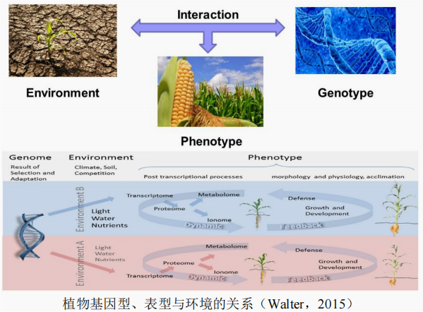 從21世紀(jì)10年代開始逐漸受到極大關(guān)注的表型phenotype、表型組phenome、表型組學(xué)phenomics概念則與生態(tài)學(xué)的相關(guān)概念不謀而合。現(xiàn)代表型概念也同樣強(qiáng)調(diào)環(huán)境對(duì)表型的影響。如今如火如荼的植物表型組學(xué)主要就是研究相同基因型的植物在不同的環(huán)境條件的表型變化與應(yīng)答。