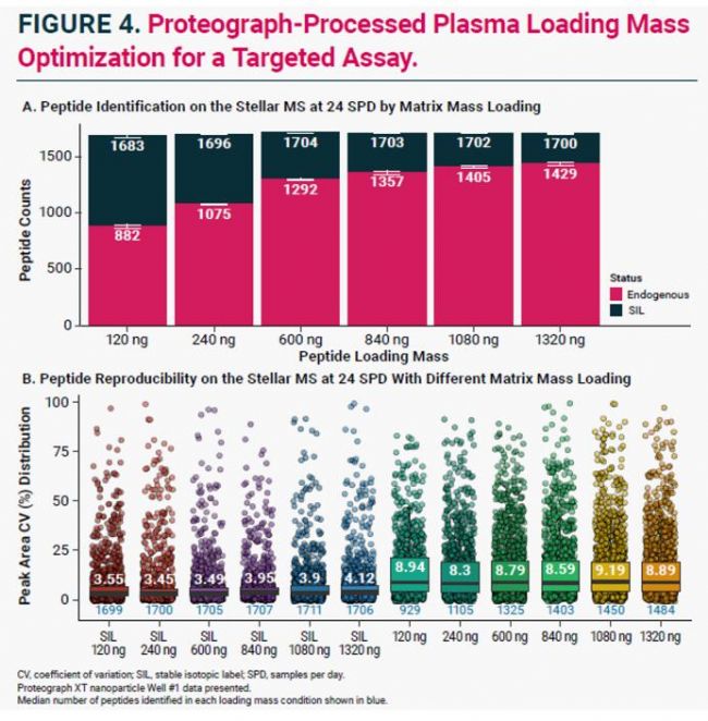 ■ 測(cè)試了一系列Proteograph血漿上樣量,并最終選擇了600 ng的最佳基質(zhì)上樣量用于蛋白質(zhì)生物標(biāo)志物的驗(yàn)證。