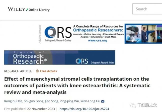 2023年11月22日,Orthopaedic Research期刊上發(fā)表了一項(xiàng)最新的薈萃分析,該研究聚焦于膝骨關(guān)節(jié)炎的干細(xì)胞注射臨床試驗(yàn)。該分析綜合了16篇符合標(biāo)準(zhǔn)的臨床研究數(shù)據(jù),共涉及875名膝骨關(guān)節(jié)炎(KOA)患者,其中干細(xì)胞組有441名患者,而對(duì)照組則包含了434名患者。