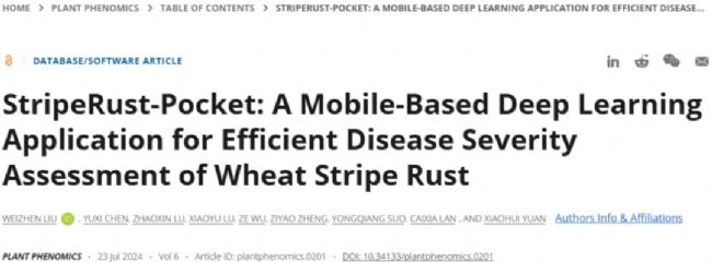 Plant Phenomics | 武漢理工大學(xué)開發(fā)了一款結(jié)合深度學(xué)習(xí)與移動端的小麥條銹病嚴(yán)重度表型智能評測APP