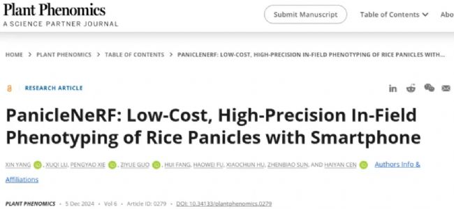 Plant Phenomics | 浙江大學(xué)岑海燕教授團隊基于智能手機與神經(jīng)輻射場的田間稻穗表型低成本高精度解析