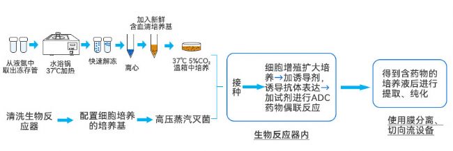 生物反應(yīng)器是細(xì)胞培養(yǎng)的核心設(shè)備,為細(xì)胞提供一個穩(wěn)定、可控的生長環(huán)境,促進(jìn)其生長和抗體的合成。對于單克隆抗體藥物生產(chǎn)來說,生物反應(yīng)器主要負(fù)責(zé)在無菌條件下大規(guī)模培養(yǎng)表達(dá)抗體的細(xì)胞株,如CHO細(xì)胞等。而對于ADC的生產(chǎn),生物反應(yīng)器則需要同時滿足抗體和藥物連接子(如小分子毒素等)的生產(chǎn)需求,為后續(xù)的偶聯(lián)反應(yīng)提供高質(zhì)量的原材料。