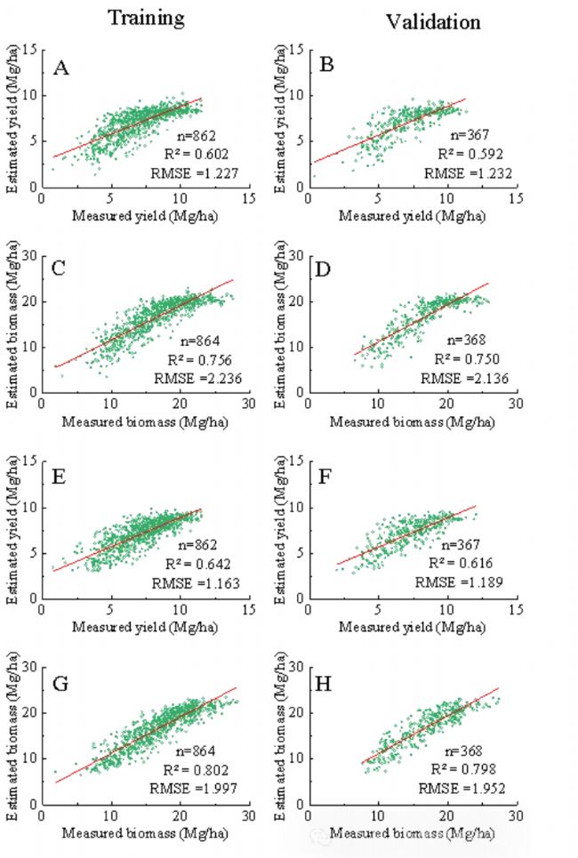 圖3 產(chǎn)量和生物量估算模型精度。