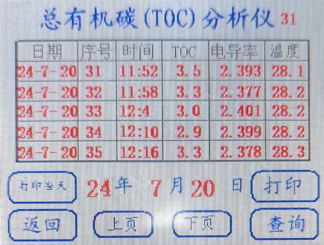(2)總有機(jī)碳(TOC):通過TOC分析儀檢測超純水中有機(jī)物殘留(建議<10 ppb),TOC超標(biāo)會導(dǎo)致液相色譜基線漂移或細(xì)胞培養(yǎng)污染,需排查預(yù)處理濾芯或純化柱性能。當(dāng)TOC>20 ppb時需更換活性炭濾芯。建議采用每周在線監(jiān)測+每季度執(zhí)行一次離線TOC檢測,與在線數(shù)據(jù)交叉驗(yàn)證。