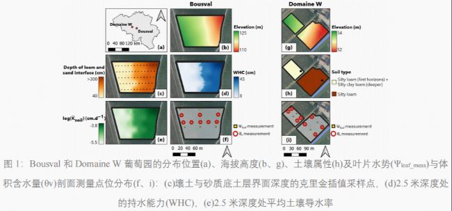 leaf)的差異有一定影響,但其空間分布差異主要還是受到葡萄園內(nèi)土壤質(zhì)地的異質(zhì)性(如黏土和沙土的混合)的影響,在土壤水分脅迫或蒸發(fā)需求(氣候條件影響)時尤為明顯。通過結(jié)合多光譜、熱成像和激光雷達(dá)數(shù)據(jù),研究者能夠有效的捕捉葡萄園內(nèi)葡萄葉片水勢的空間分布,這種方法不僅提高了預(yù)測的準(zhǔn)確性,還減少了預(yù)測的不確定性。