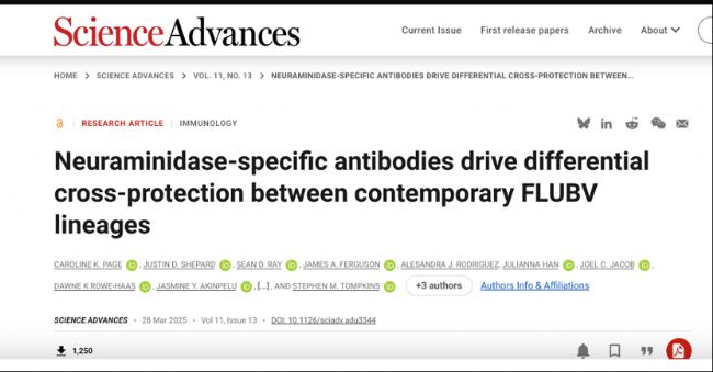 研究團隊通過動物模型實驗發(fā)現(xiàn),維多利亞譜系的免疫反應產(chǎn)生的神經(jīng)氨酸酶(NA)特異性抗體具有跨譜系的反應性,從而提供了對山形譜系的強大交叉保護;相比之下,山形譜系的免疫反應所產(chǎn)生的抗體則對維多利亞譜系的反應能力有限。這一現(xiàn)象有助于解釋近年來山形譜系病毒在流行中逐漸消失的原因,并強調(diào)了在疫苗策略中針對NA的必要性,以增強對不同譜系FLUBV的保護能力。