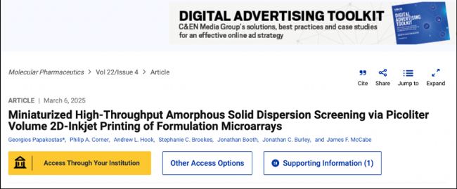 這篇文章主要介紹了一種新穎的藥物和聚合物微陣列制備方法,利用微升點樣技術從溶液中創(chuàng)建可尋址的藥物配方微陣列。這項技術旨在解決新藥物在開發(fā)過程中常見的物理化學性質(zhì)差的問題,尤其是在早期階段對安全有效的藥物制劑的需求。