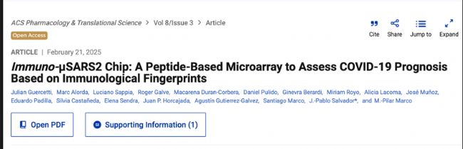 Immuno-μSARS2芯片記錄了感染SARS-CoV-2病毒患者的免疫反應特征,能夠分析與28種不同肽表位和7種蛋白質(zhì)相關的血清親和力。經(jīng)過合理設計和合成,構(gòu)建了一個多重、高通量的熒光微陣列平臺。該微陣列芯片能夠在90分鐘內(nèi)同時處理96個樣本(每片24個樣本),且只需10微升血清。并可以根據(jù)Immuno-μSARS2提供的疾病進展信息幫助醫(yī)生,同時也可在其他傳染病的診斷中輕松實施。