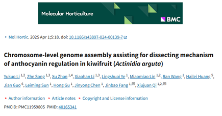 2025年4月,中國(guó)農(nóng)業(yè)科學(xué)院鄭州果樹(shù)研究所齊秀娟團(tuán)隊(duì)在Molecular Horticulture(IF=10.6)期刊發(fā)表了題為 “Chromosome-level genome assembly assisting for dissecting mechanism of anthocyanin regulation in kiwifruit (Actinidia arguta)”的研究論文,該研究組裝了首個(gè)全紅型四倍體軟棗獼猴桃基因組,利用DAP-seq技術(shù)揭示了AaBEE1-AaLDOX色澤調(diào)控模塊,為揭開(kāi)軟棗獼猴桃果實(shí)紅色形成的奧秘、改良獼猴桃色澤品質(zhì)奠定了堅(jiān)實(shí)基礎(chǔ)。