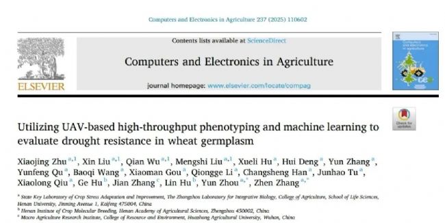 分享一篇河南大學(xué)小麥研究團隊關(guān)于利用無人機技術(shù)結(jié)合機器學(xué)習(xí)進行小麥抗旱性評價的研究成果于2025年5月28日在中科院一區(qū)TOP期刊Computers and Electronics in Agriculture,以“Utilizing UAV-based high-throughput phenotyping and machine learning to evaluate drought resistance in wheat germplasm”為題的文章,為小麥抗旱表型評估、利用和育種改良提供了重要參考。
